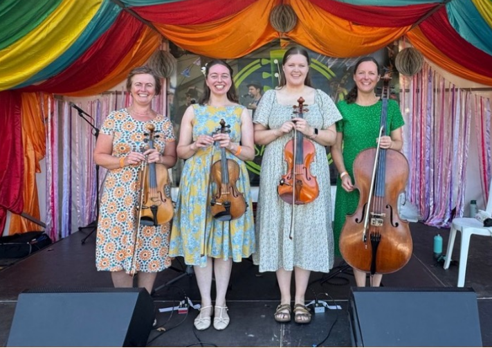 The Orchard Cafe String Quartet’s programme will be a blend of their signature contemporary folk tune arrangements, along with music by classical composers inspired by folk music. Classical music will include melodies from Haydn, Vaughan Williams and Satie. Folk music will include tunes from Denmark, Norway, Sweden and Scotland. Many of these contemporary arrangements wouldn’t be out of place in a film soundtrack. The quartet writes some of its own music and the programme will include tunes by Exeter based composer, Ali Jones.